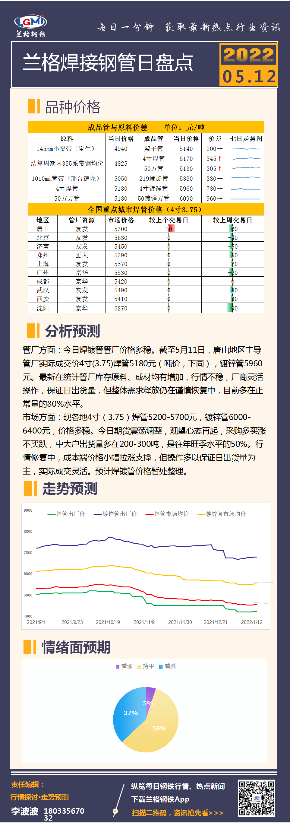 - 兰格焊管日盘点:买涨不买跌 价格及需求仍在修复中2022/5/12