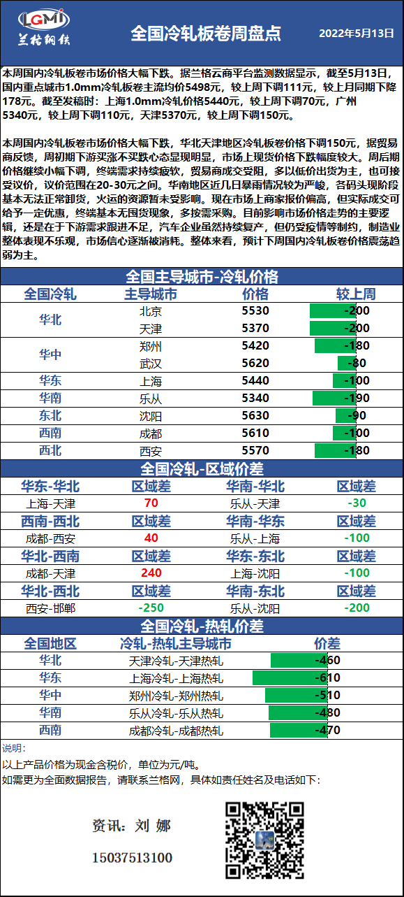 - 兰格钢铁价格指数(LGMI)第20周(22.5.9-5.13)2022/5/13