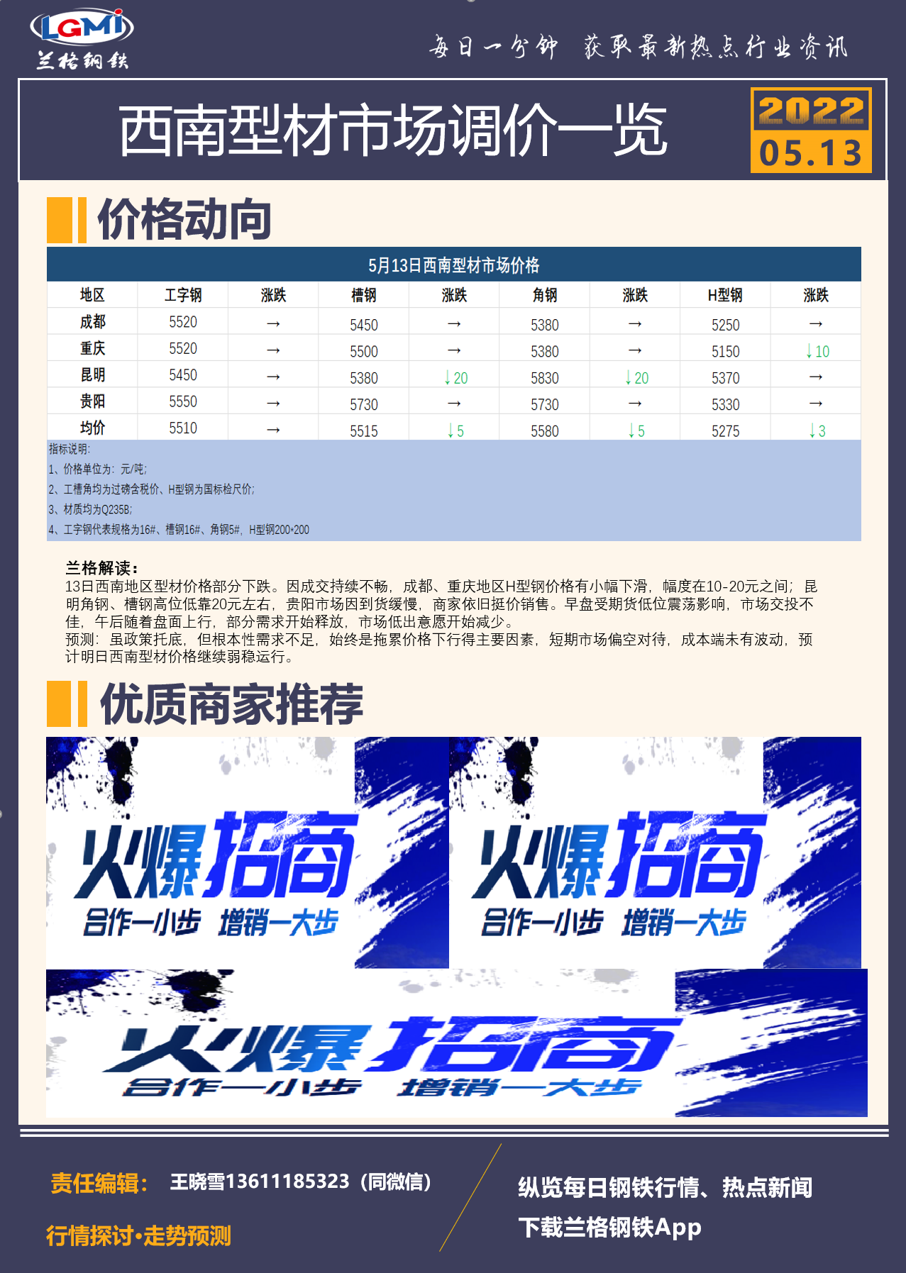 - 兰格钢铁价格指数(LGMI)第20周(22.5.9-5.13)2022/5/13