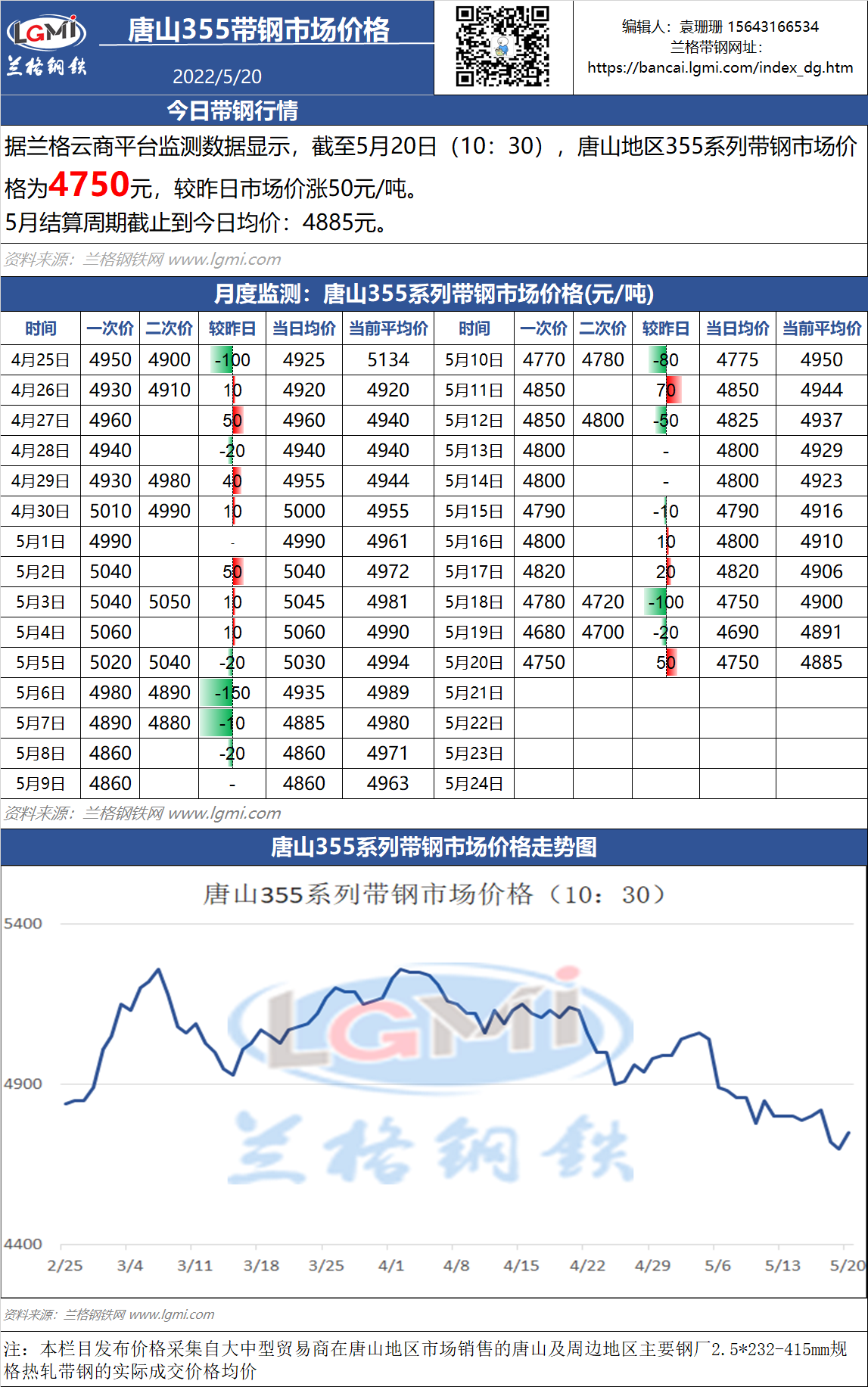 - 调价:5月20日唐山东海带钢出厂价格盘中涨10元2022/5/20