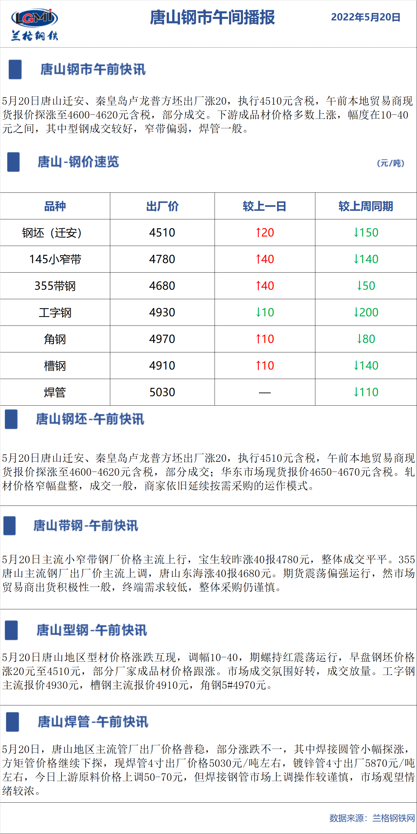 5月20日兰格唐山钢市午间播报