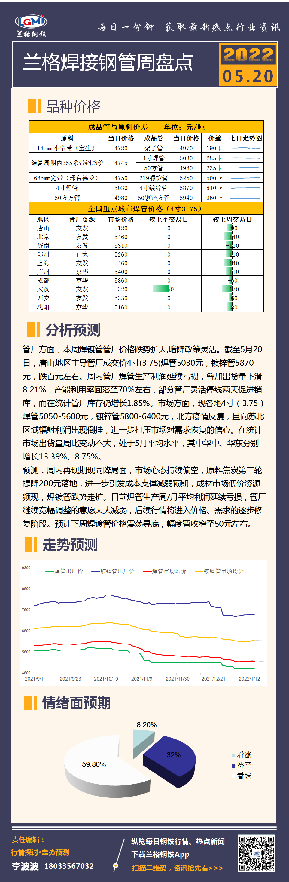 - 兰格焊管周盘点:反弹动力暂不足 关注下周筑底情况2022/5/20