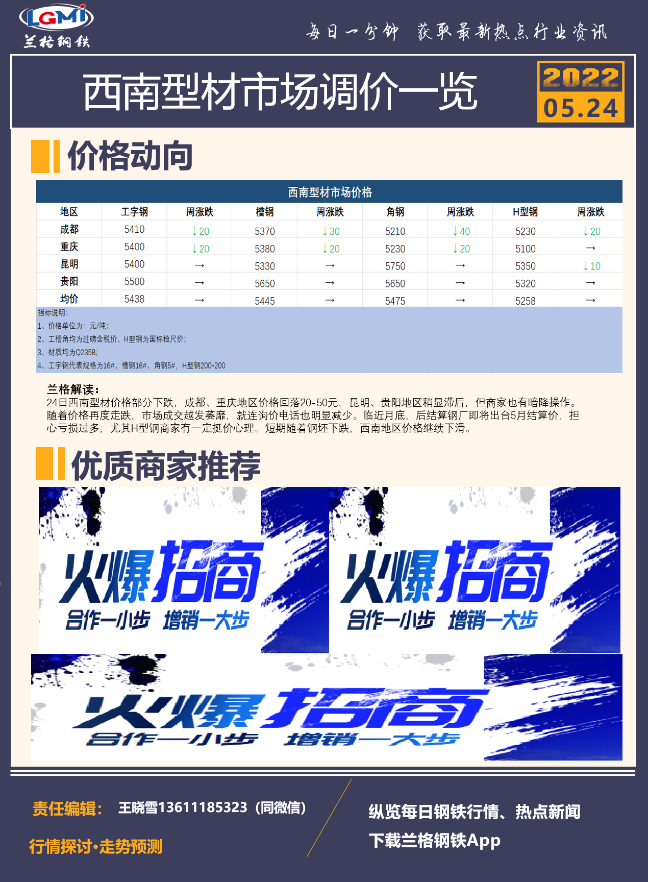 - 西南型材日盘点:成交不畅 价格暂稳观望2022/5/23