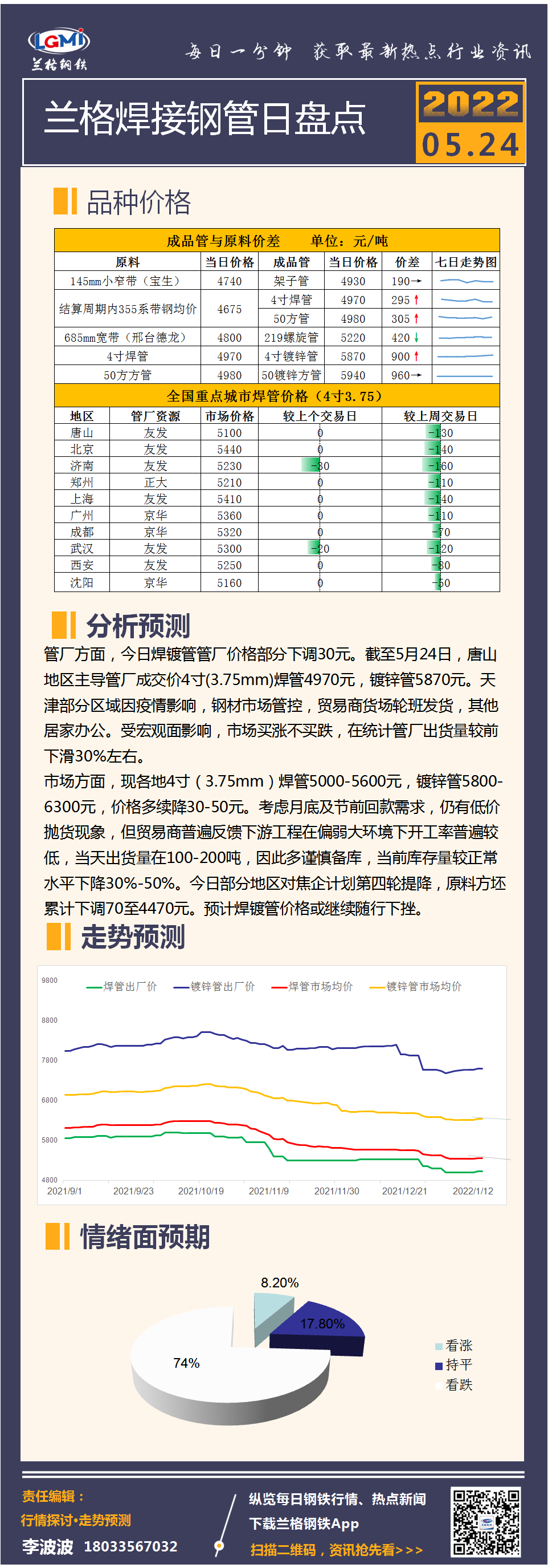 - 兰格焊管日盘点:价格涨跌互现 反弹动力暂不足2022/5/23