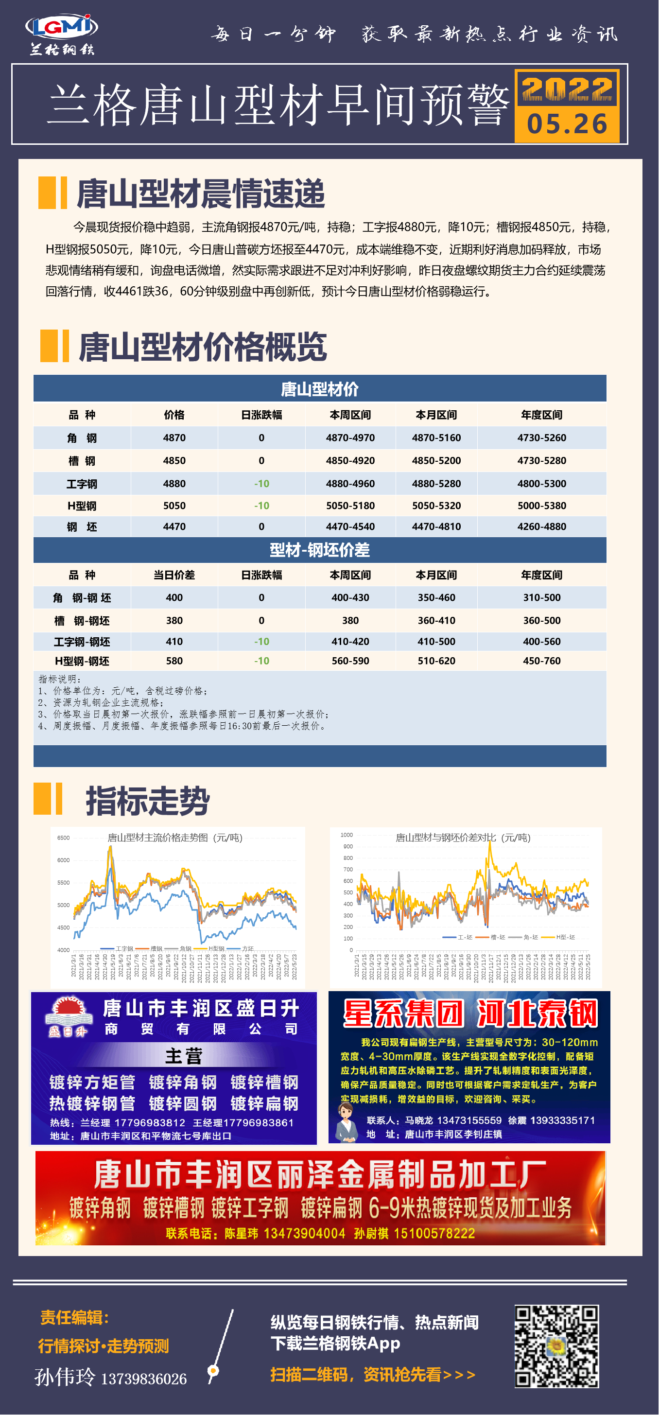 - 5月26日兰格唐山型材早间预警2022/5/26