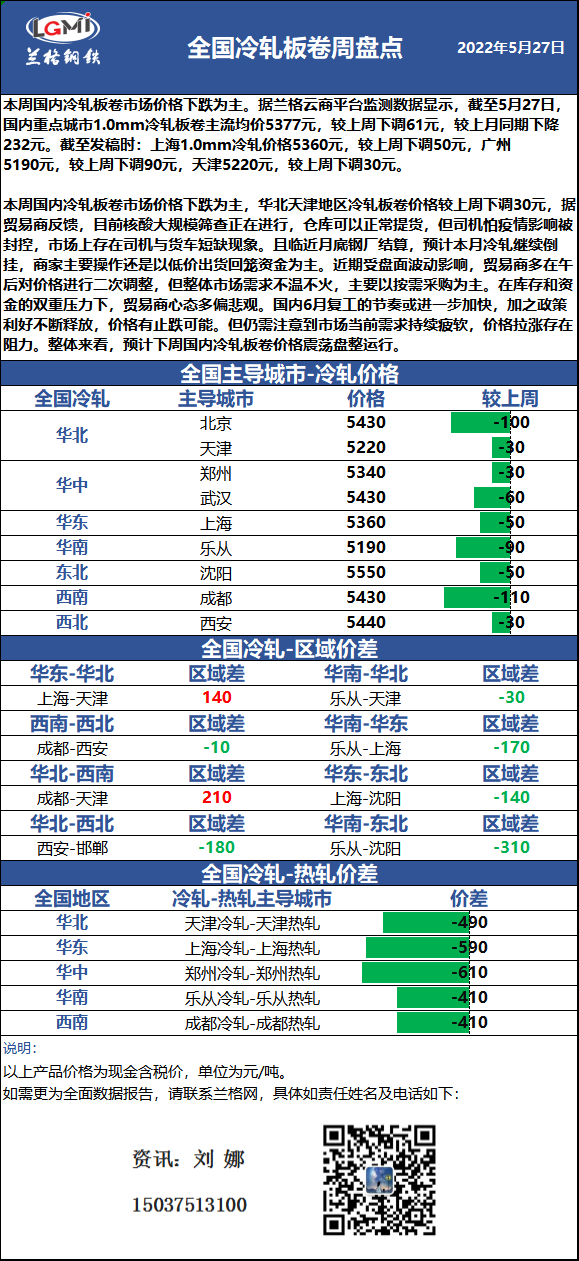 - 兰格钢铁价格指数(LGMI)第22周(22.5.23-5.27)2022/5/27