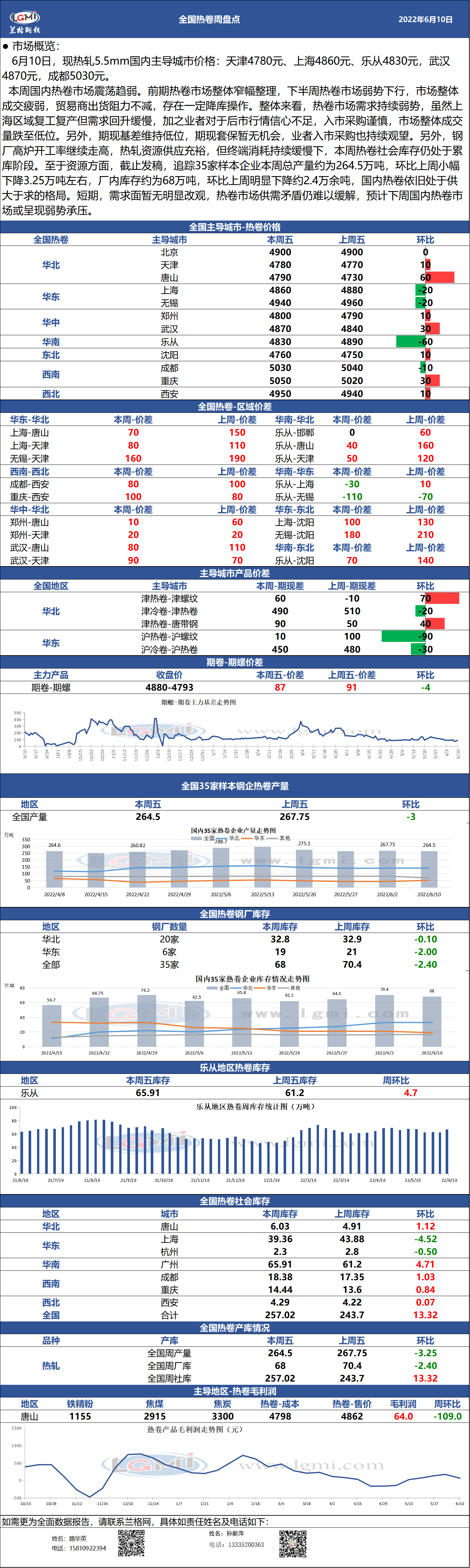 - 6月6-10日全国钢厂建筑钢材调价汇总2022/6/10
