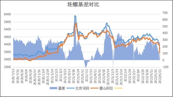 坯螺价差:以北京市场为例,6月21日河钢螺纹基价4130元与钢坯3830元基差为300元,较上个交易日扩大60元。