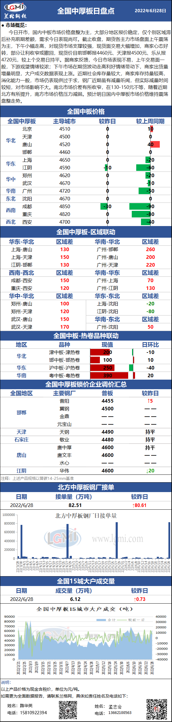 - 兰格中厚板日盘点:市场价格盘整 成交增量明显2022/6/28