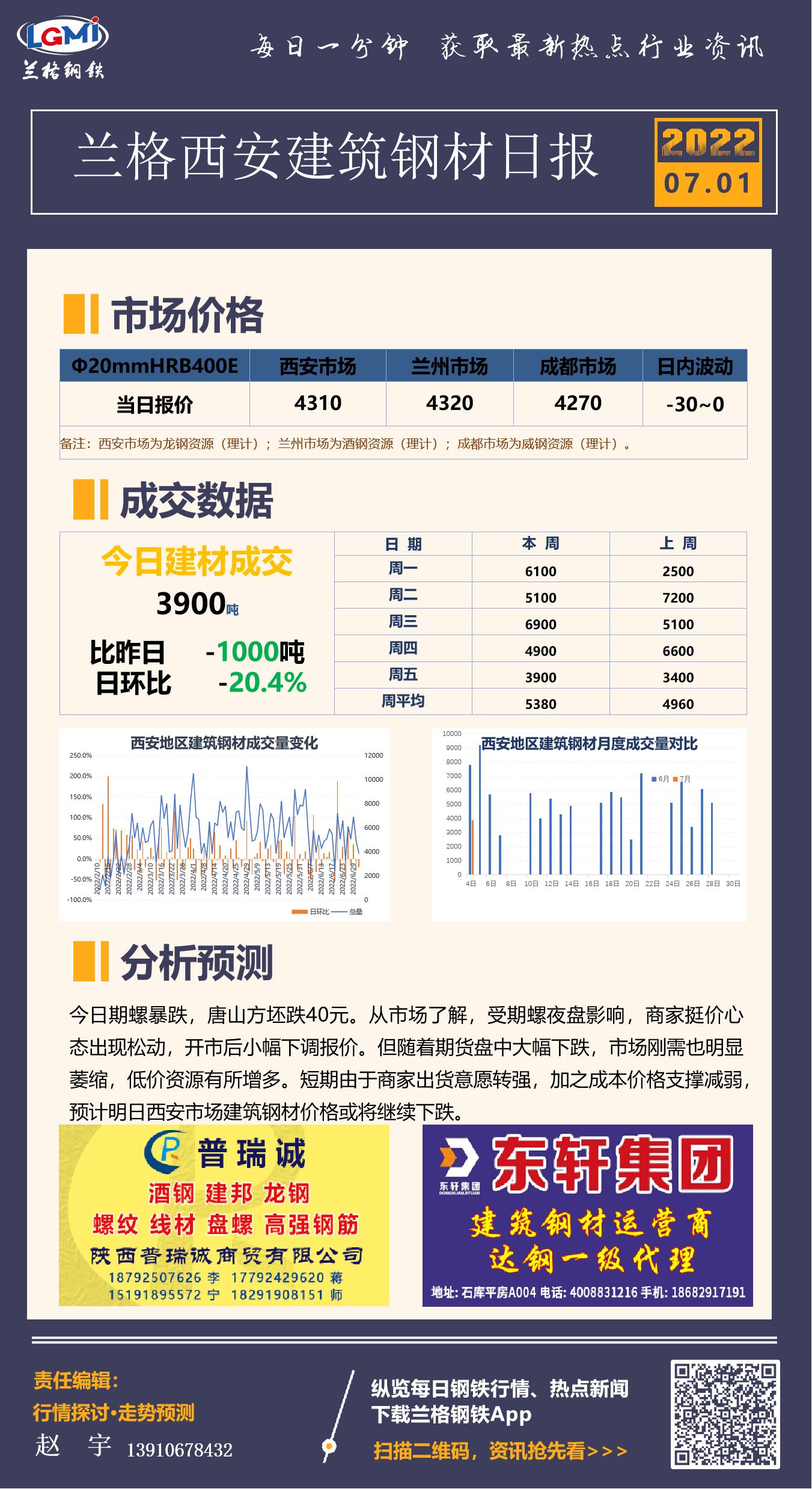 - 7月1日中天钢铁集团品种线材价格下调100元2022/7/1