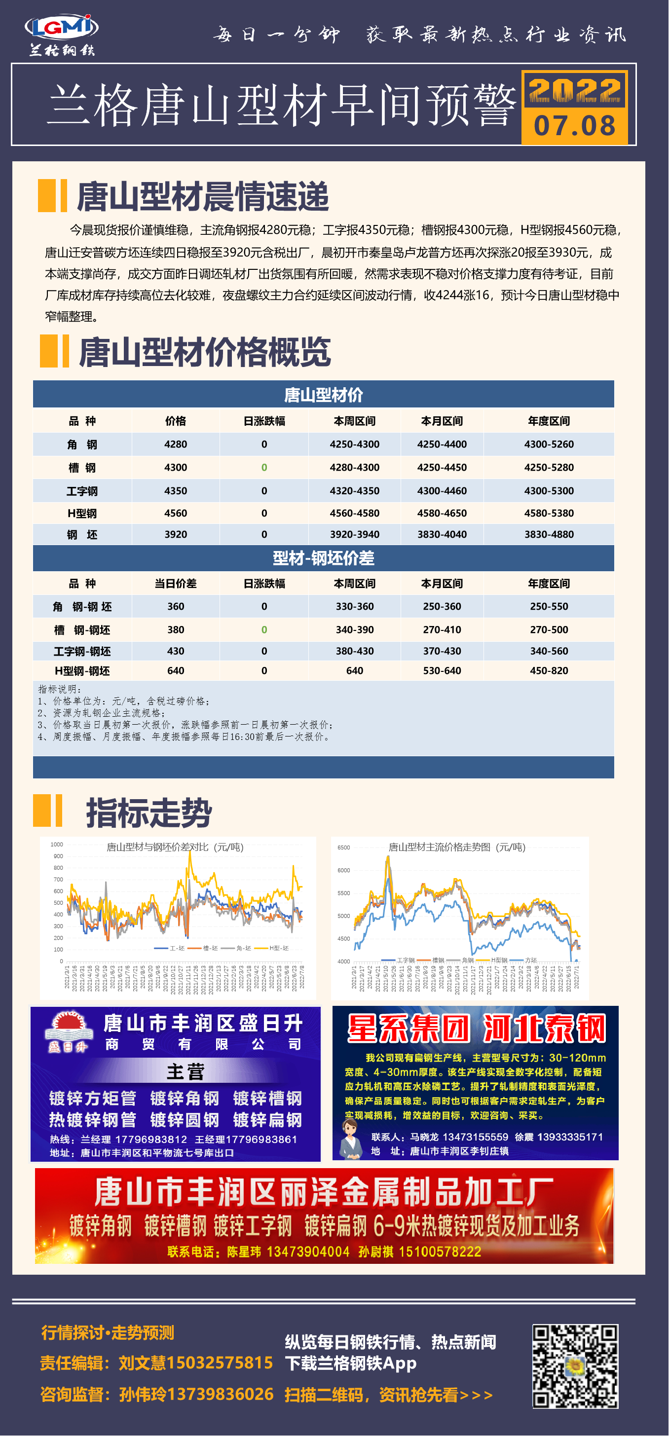 - 7月8日兰格唐山型材早间预警2022/7/8