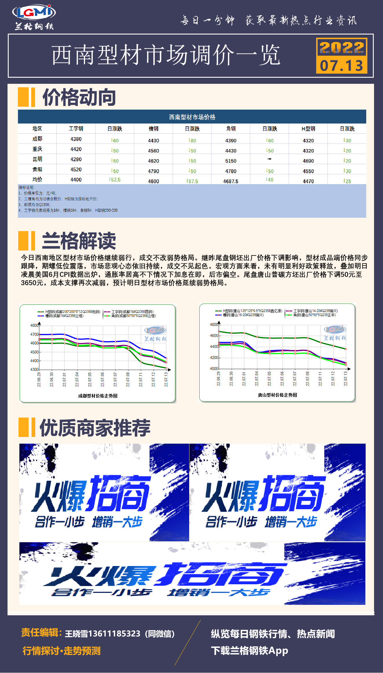 - 西南型材日盘点:价格继续下探 整体成交不见好转2022/7/13