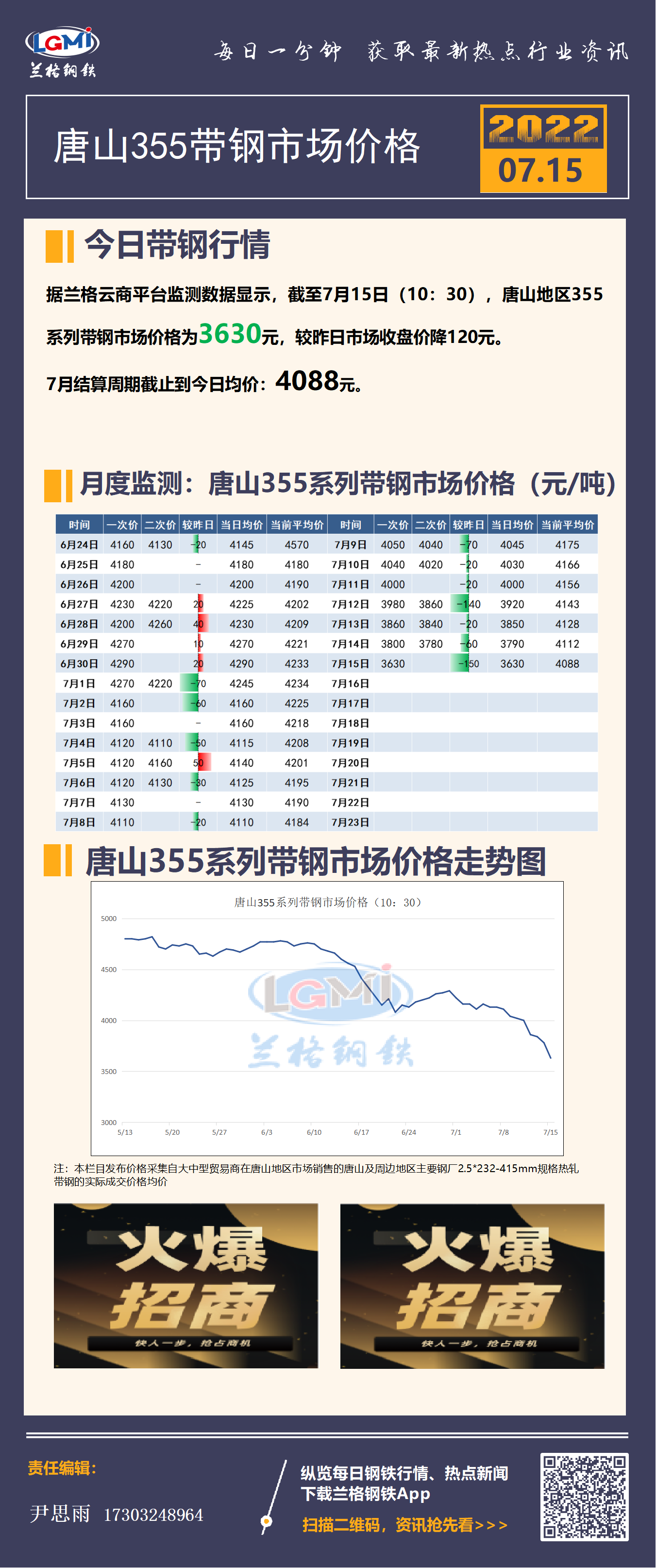 7月15日(10:30)唐山355系带钢市场价格