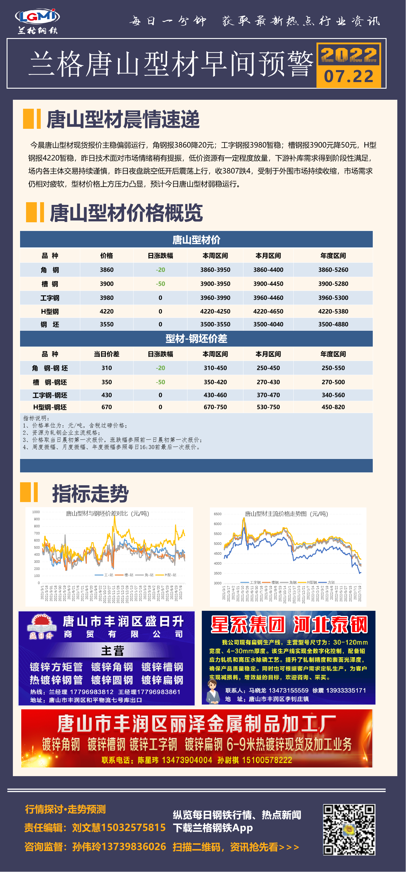 7月22日兰格唐山型材早间预警