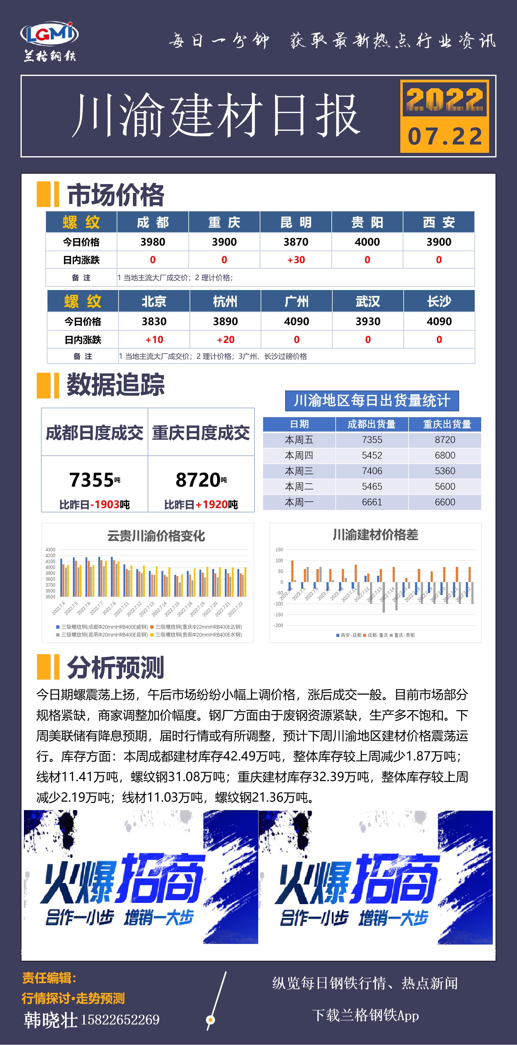 - 川渝地区建材价格以稳为主 成交一般2022/7/22