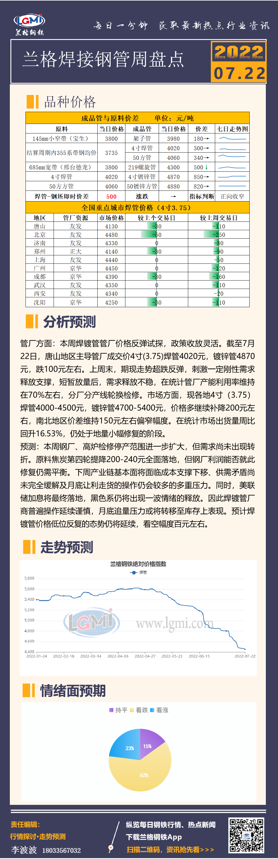 - 兰格焊管周盘点:反弹阻力不断 下周仍将面临考验2022/7/22