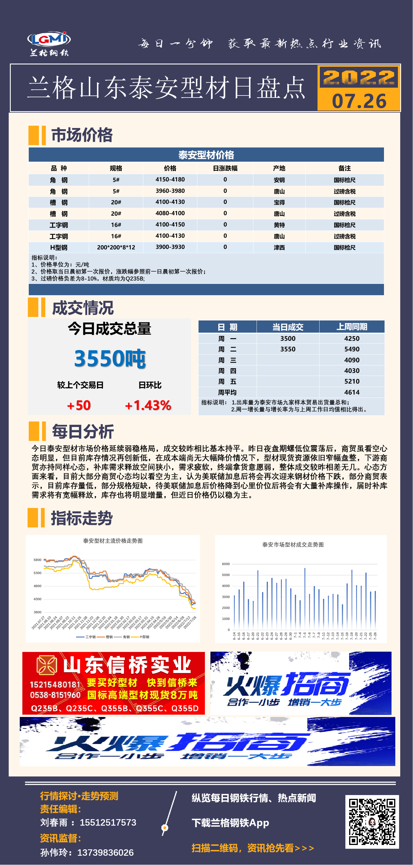 - 泰安型材日盘点:价格窄幅盘整 市场较为平静 成交清淡2022/7/26