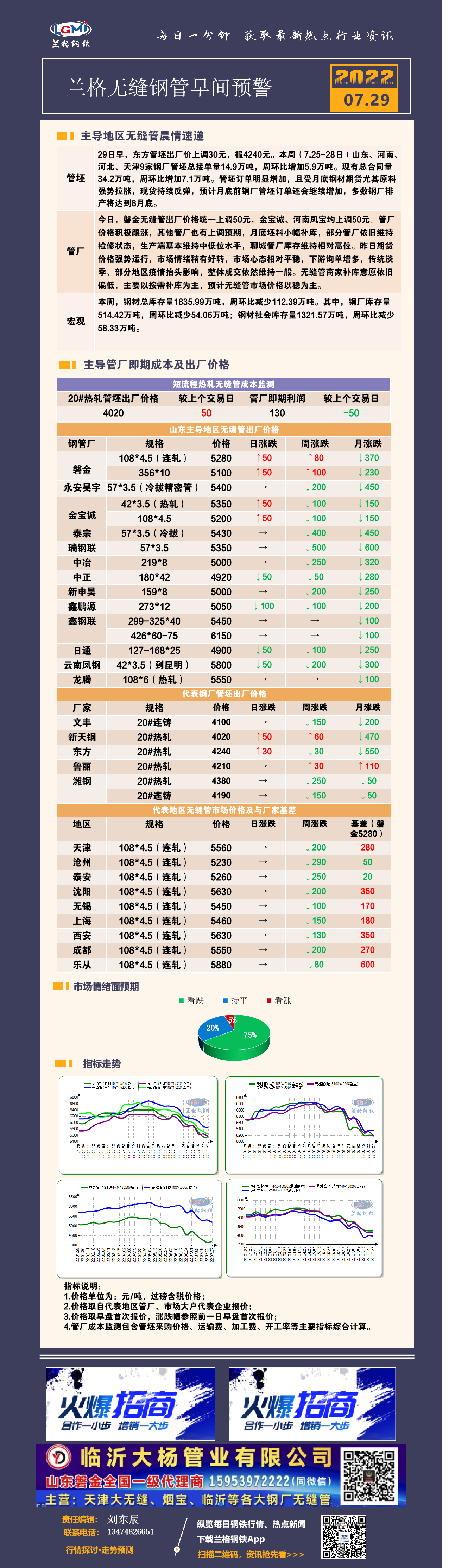 7月29日(9:20)兰格无缝钢管早间预警