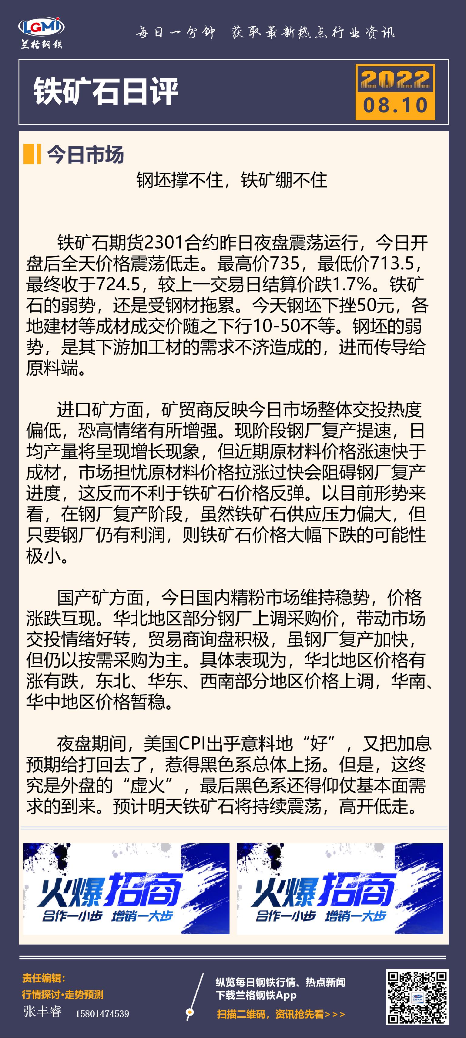 - 8月10日铁矿石日评:钢坯撑不住 铁矿绷不住2022/8/10