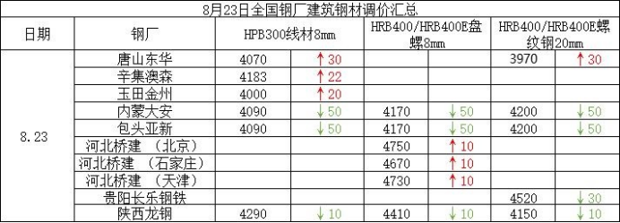 - 8月23日贵阳长乐钢铁建筑钢材出厂价格下降30元2022/8/23