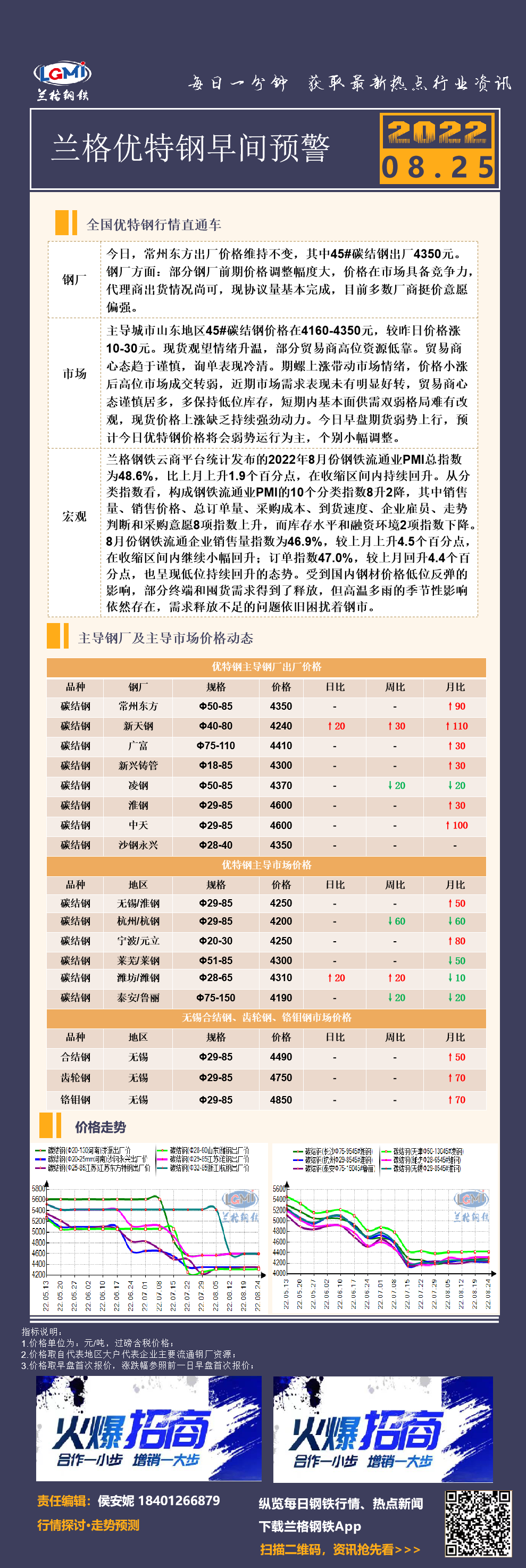 8月25日(9:30)兰格优特钢早间预警