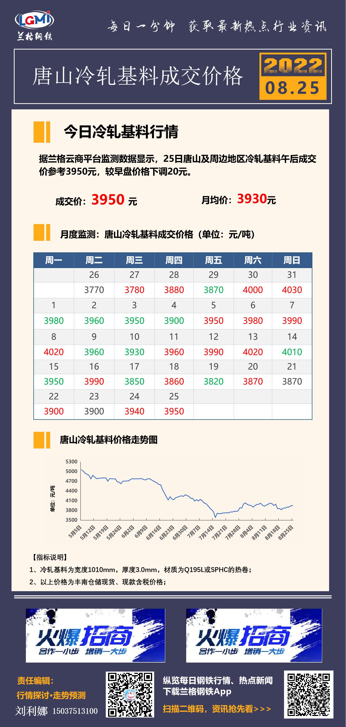 - 8月25日兰格钢铁网废钢流通基准价格指数2716涨52022/8/25