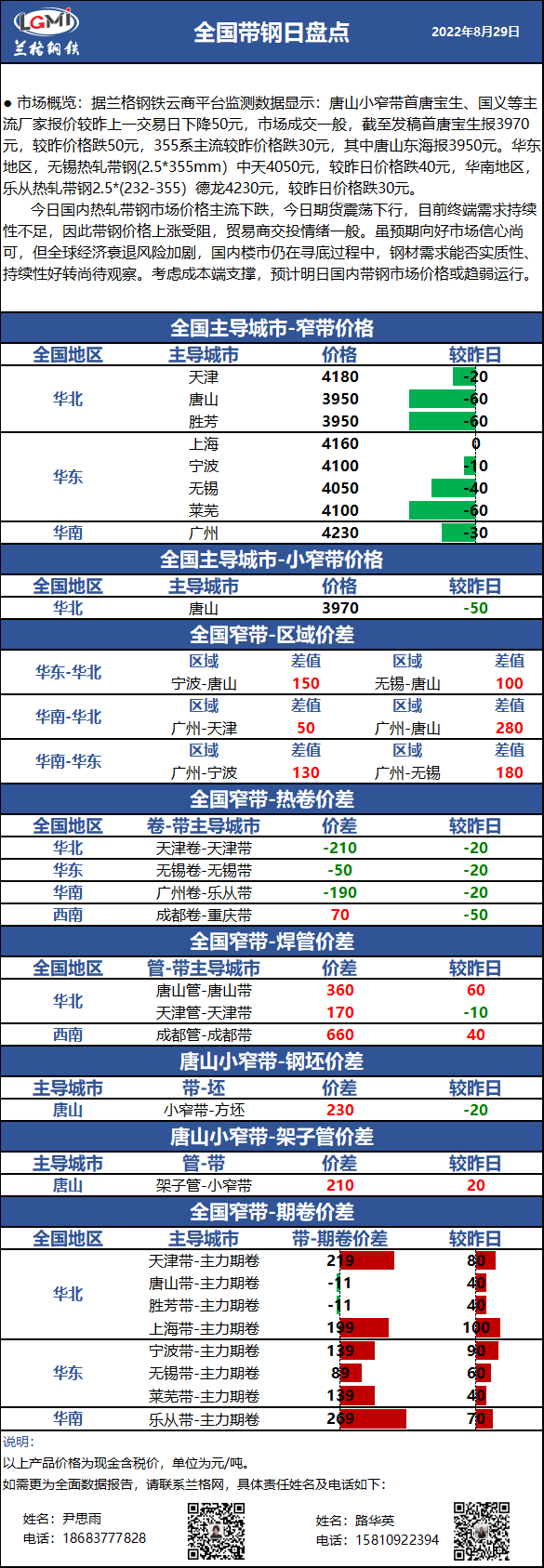 - 兰格带钢日盘点:国内带钢价格主流下跌 贸易商交投情绪一般2022/8/29