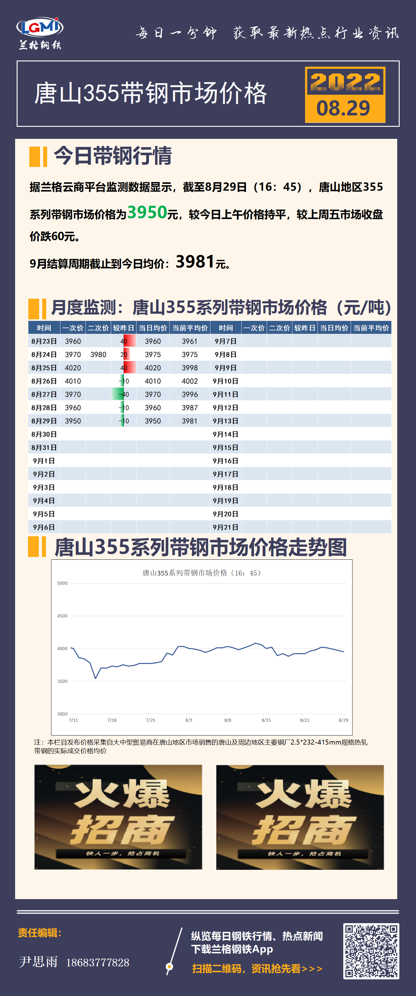 - 8月29日(16:45)唐山355系带钢市场价格2022/8/29