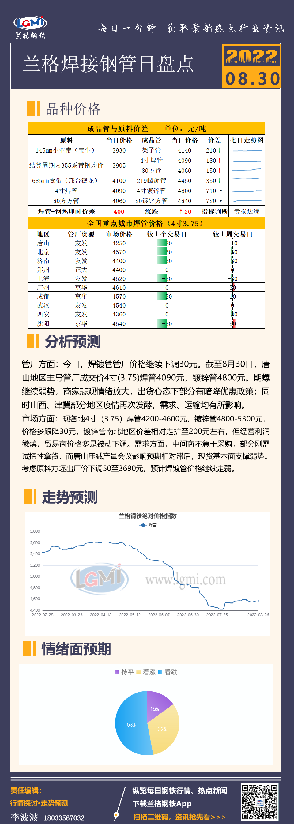 - 兰格焊管日盘点:跌势未尽 中下游“不买跌”情绪放大2022/8/30