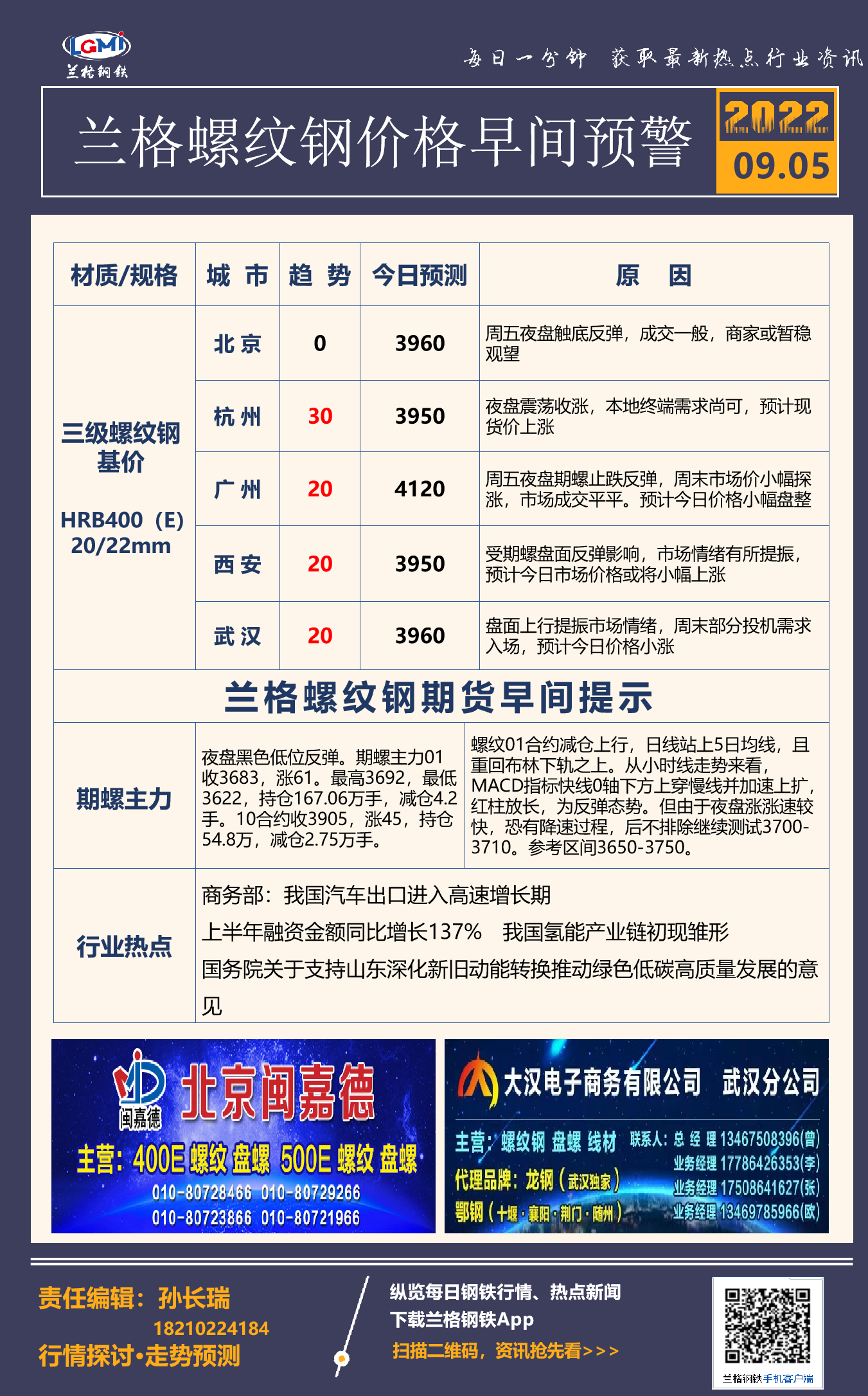 发表日期:2022/9/5 9:25:22 兰格钢铁
