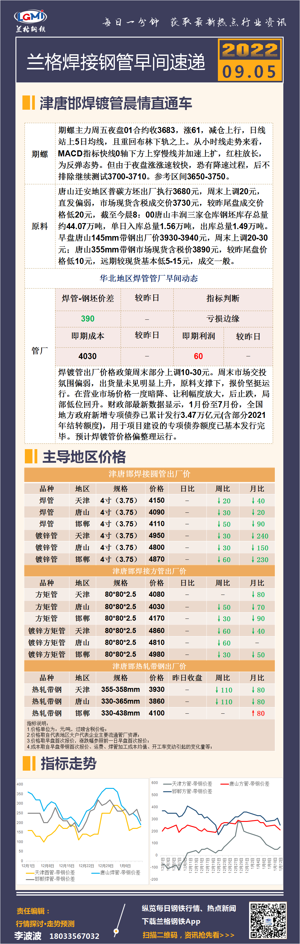 9月5日(9:20)兰格津唐邯焊接钢管早间速递