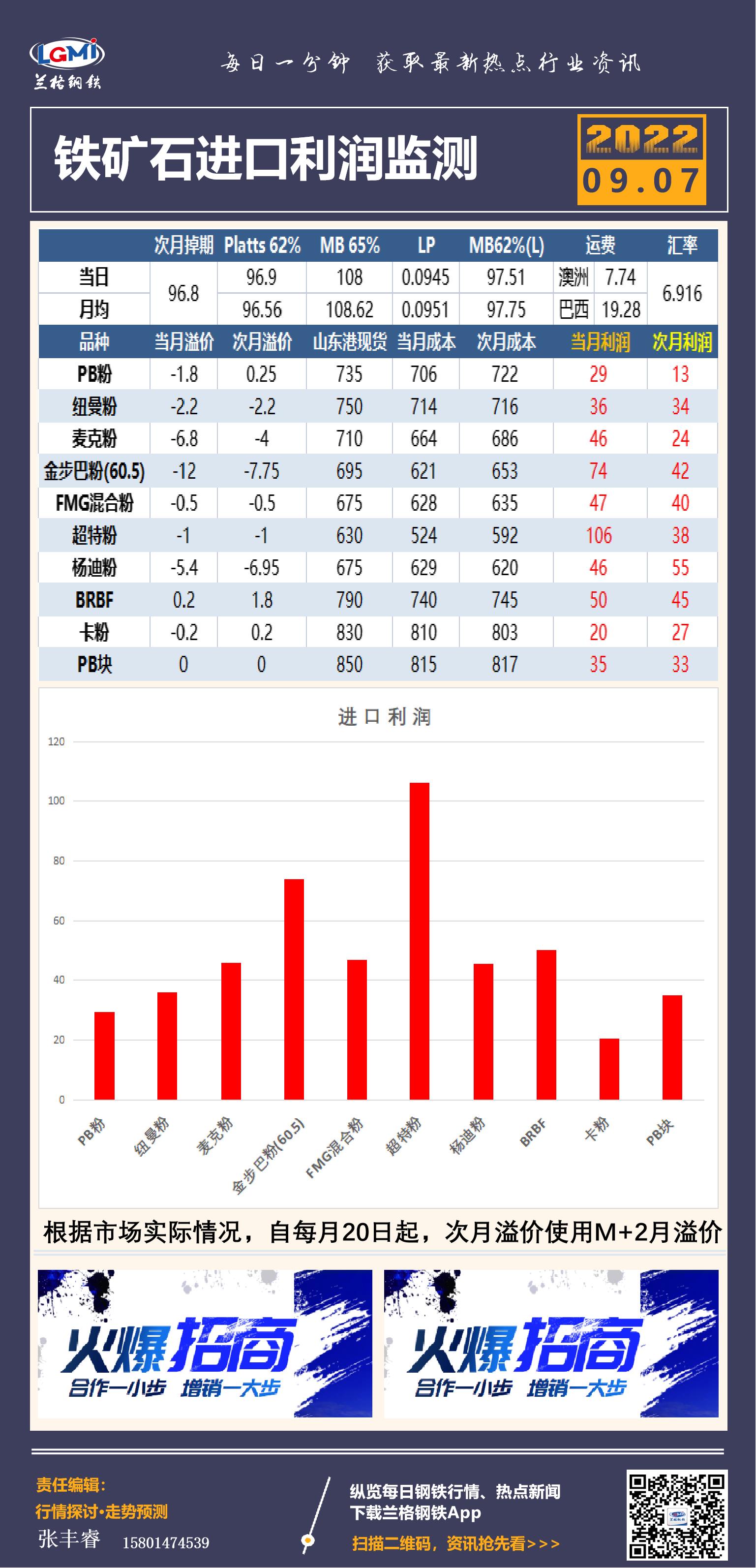 - 9月7日铁矿石现货进口利润监测2022/9/7