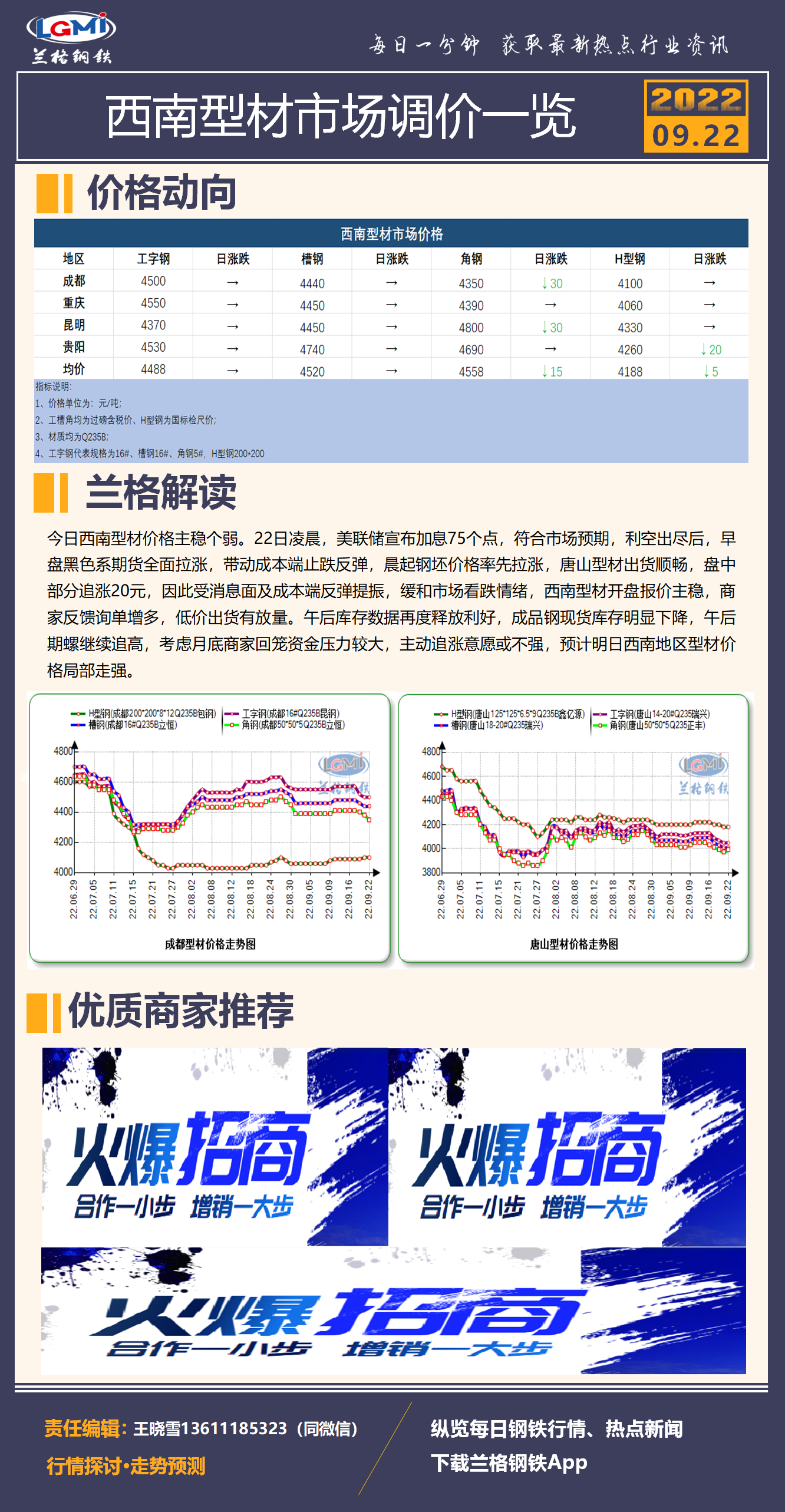 - 9月22日广西桂鑫钢铁建筑钢材二次出厂价格上调20-30元2022/9/22