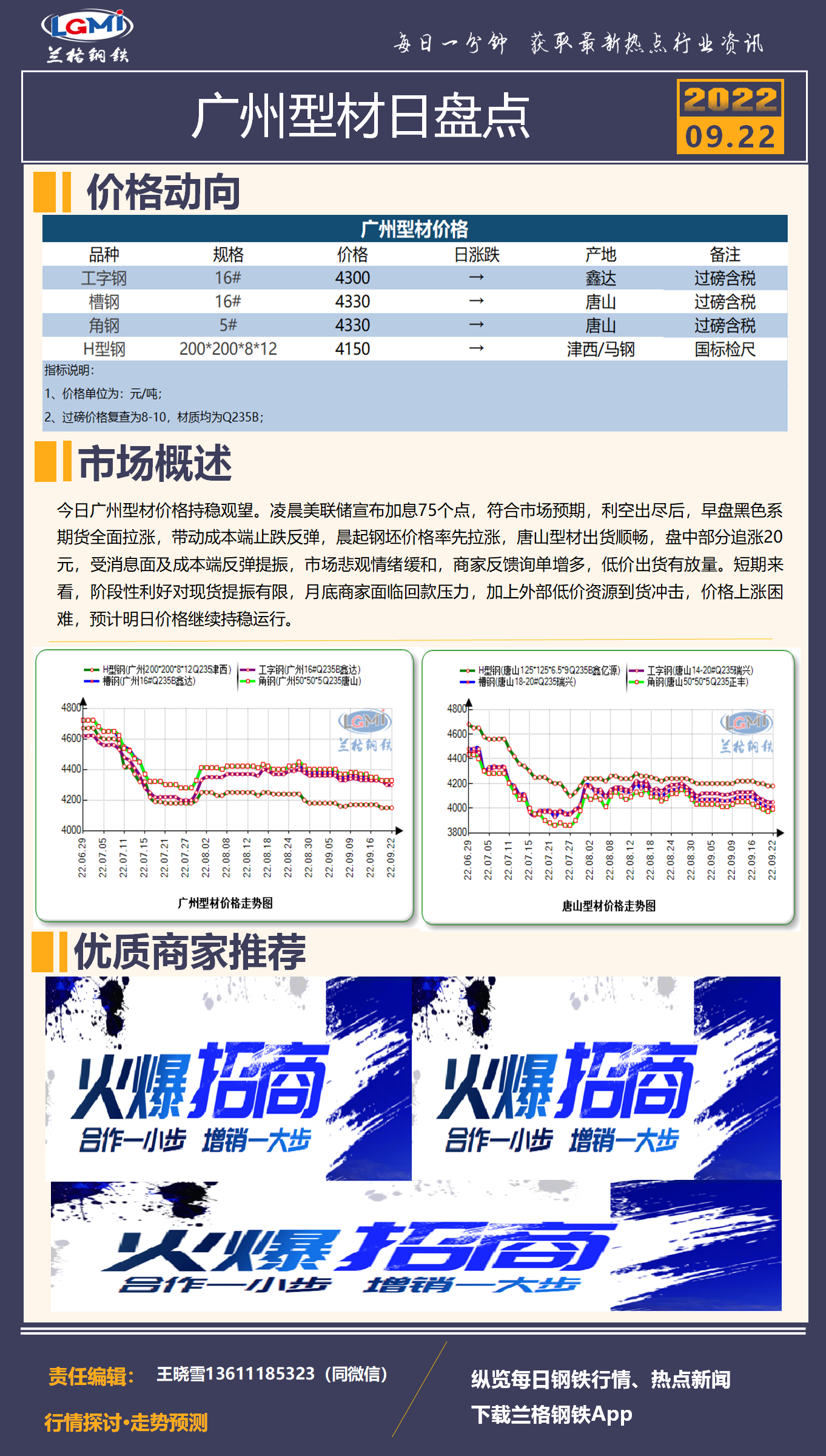 - 9月22日广西桂鑫钢铁建筑钢材二次出厂价格上调20-30元2022/9/22