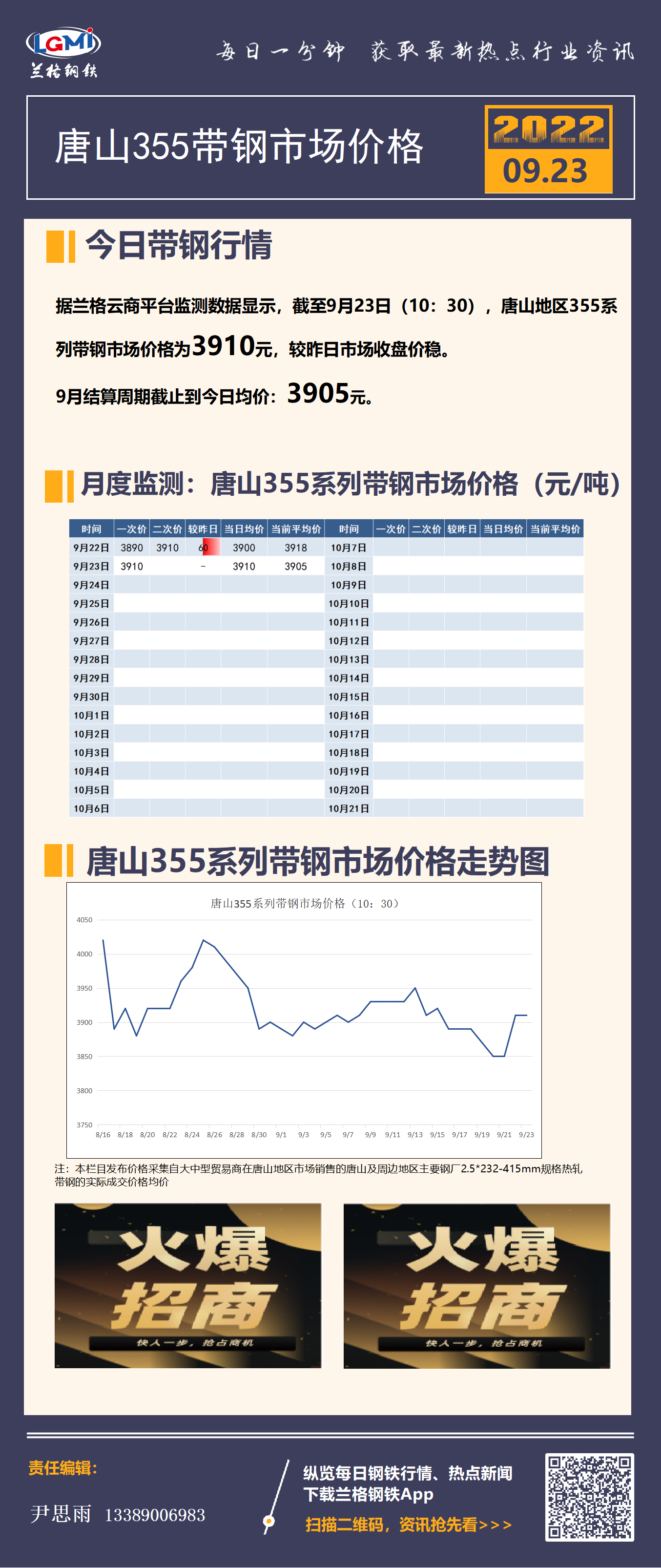 - 9月23日(10:30)唐山355系带钢市场价格2022/9/23