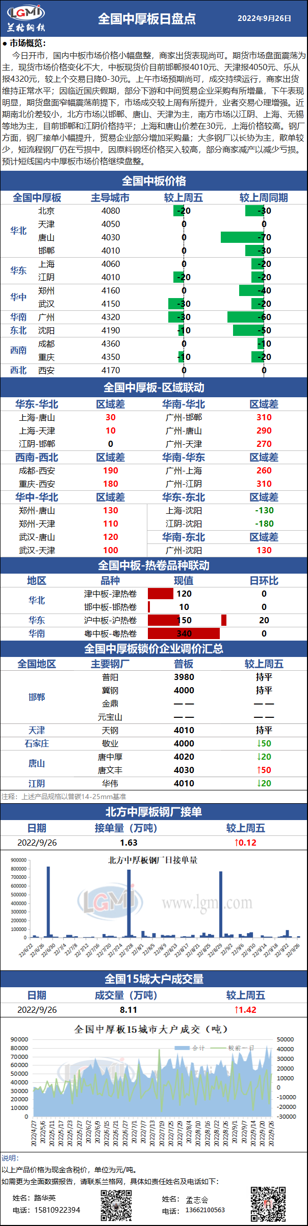 - 兰格调研:9月26日津冀地区中厚板厂接单2022/9/26
