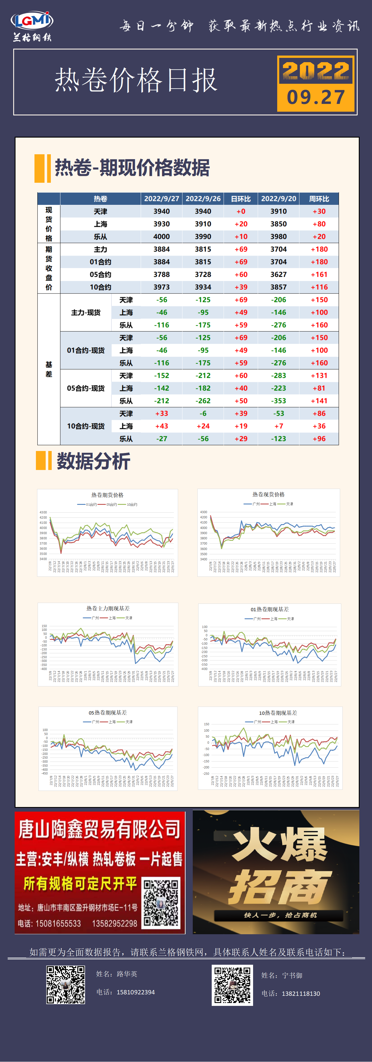 - 快讯:27日国内热卷主导价格个别上调10-20元左右2022/9/27