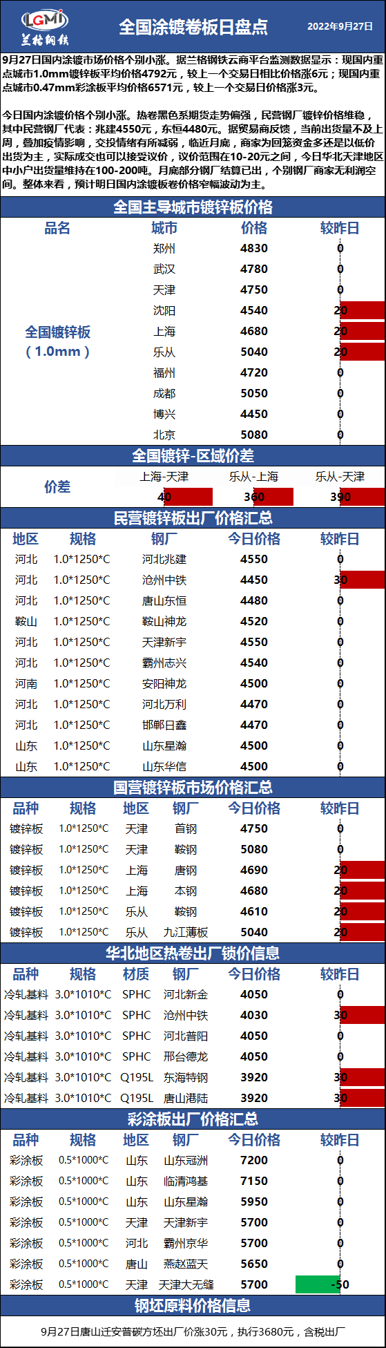 - 兰格建筑钢材日盘点:市场价小幅上涨 成交需求火爆2022/9/27
