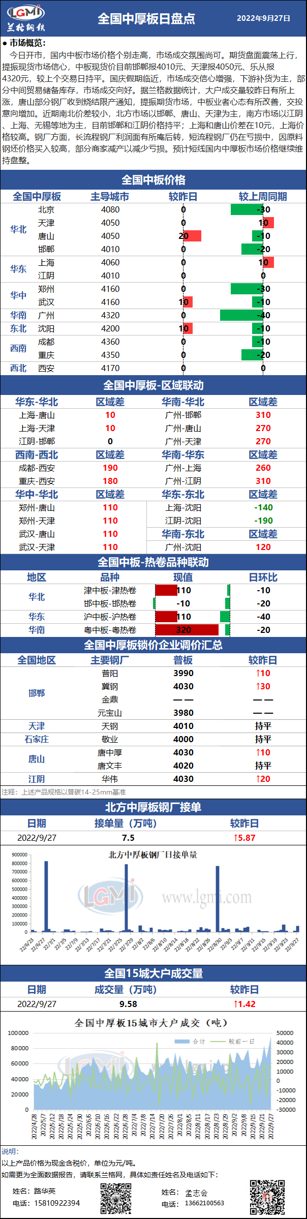 - 9月27日国内中厚板锁价企业调价汇总2022/9/27