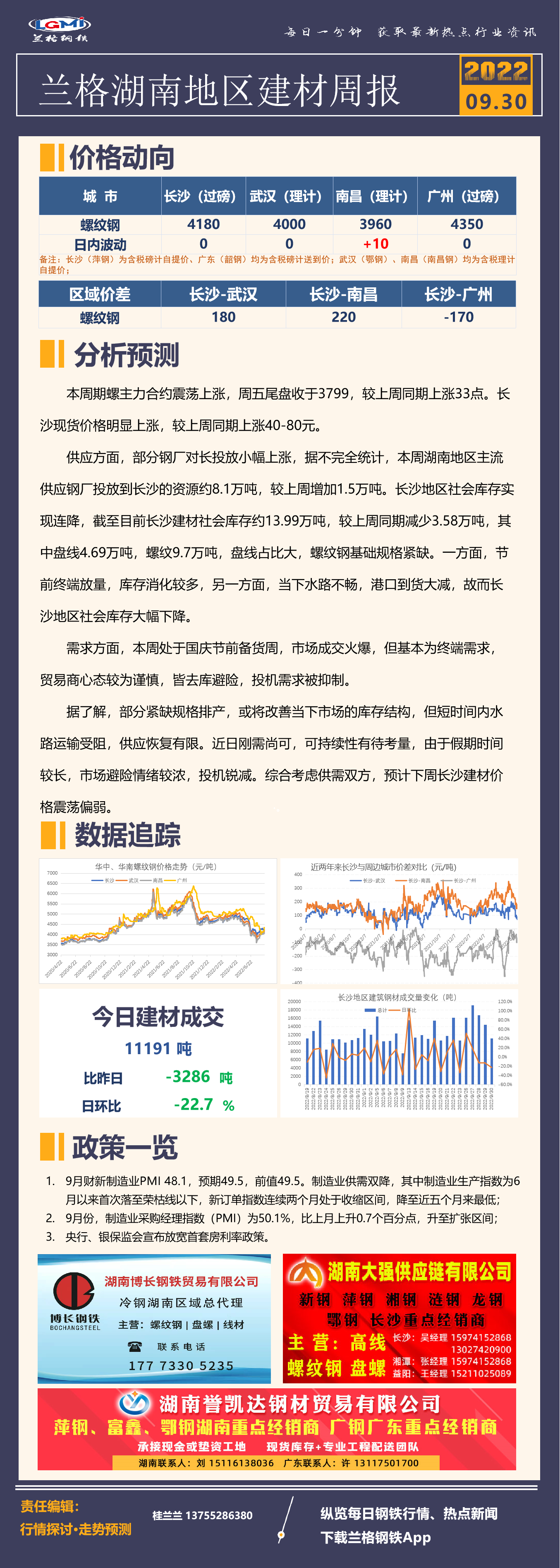 - 长沙建筑钢材库存统计(09.30)2022/9/30