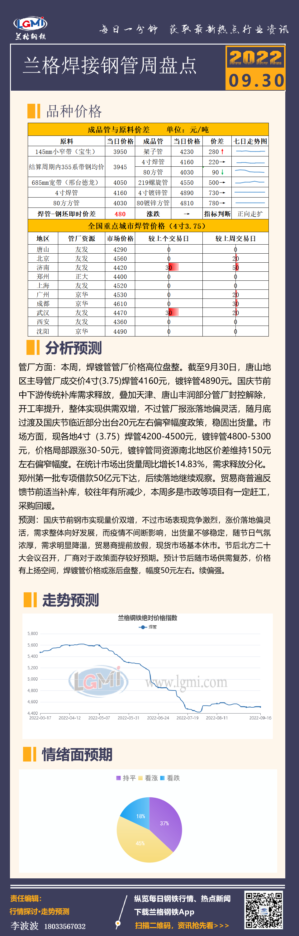 - 兰格焊管周盘点:节前量价配合向好 节后政策面或再支撑2022/9/30