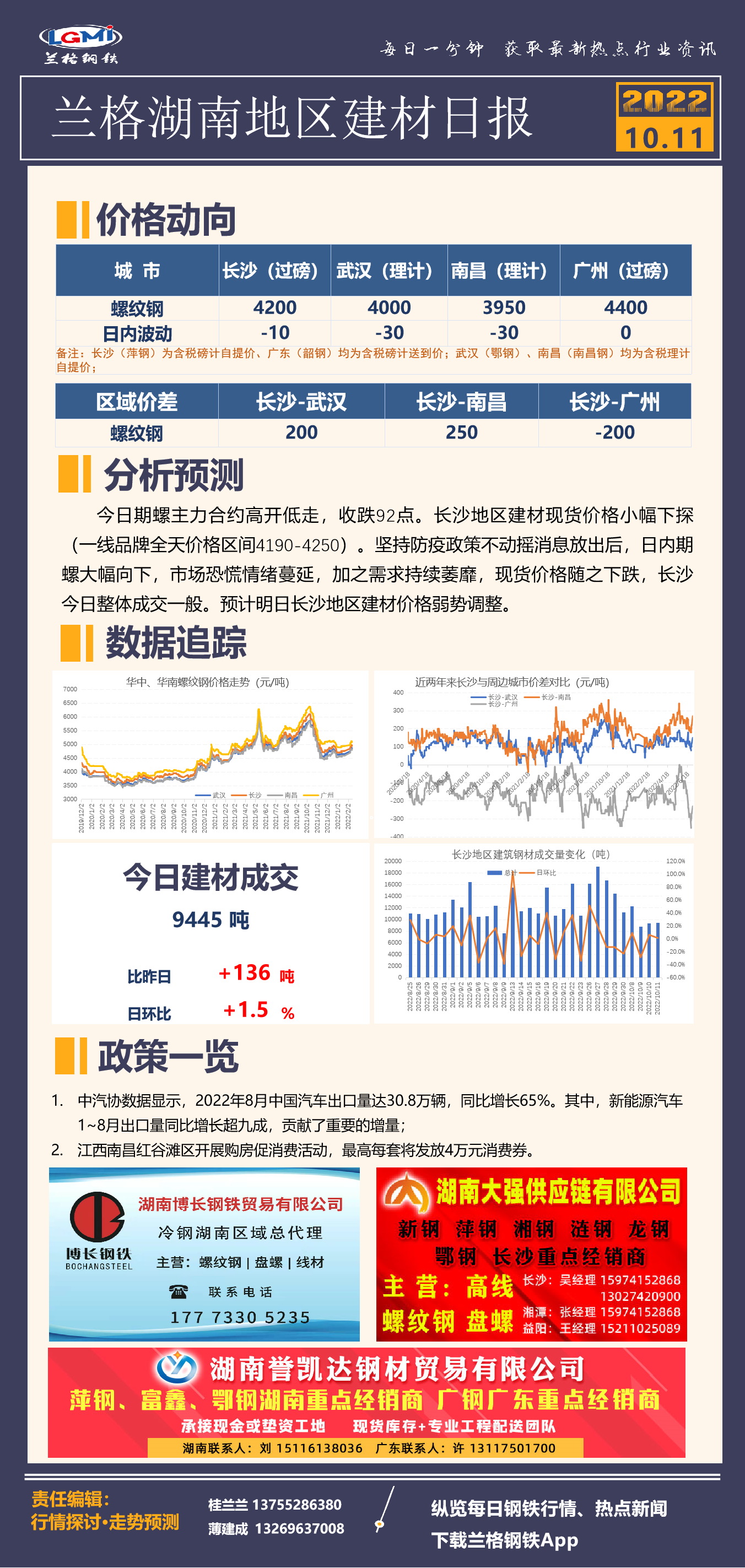 - 长沙建筑钢材库存统计(10.08)2022/10/8