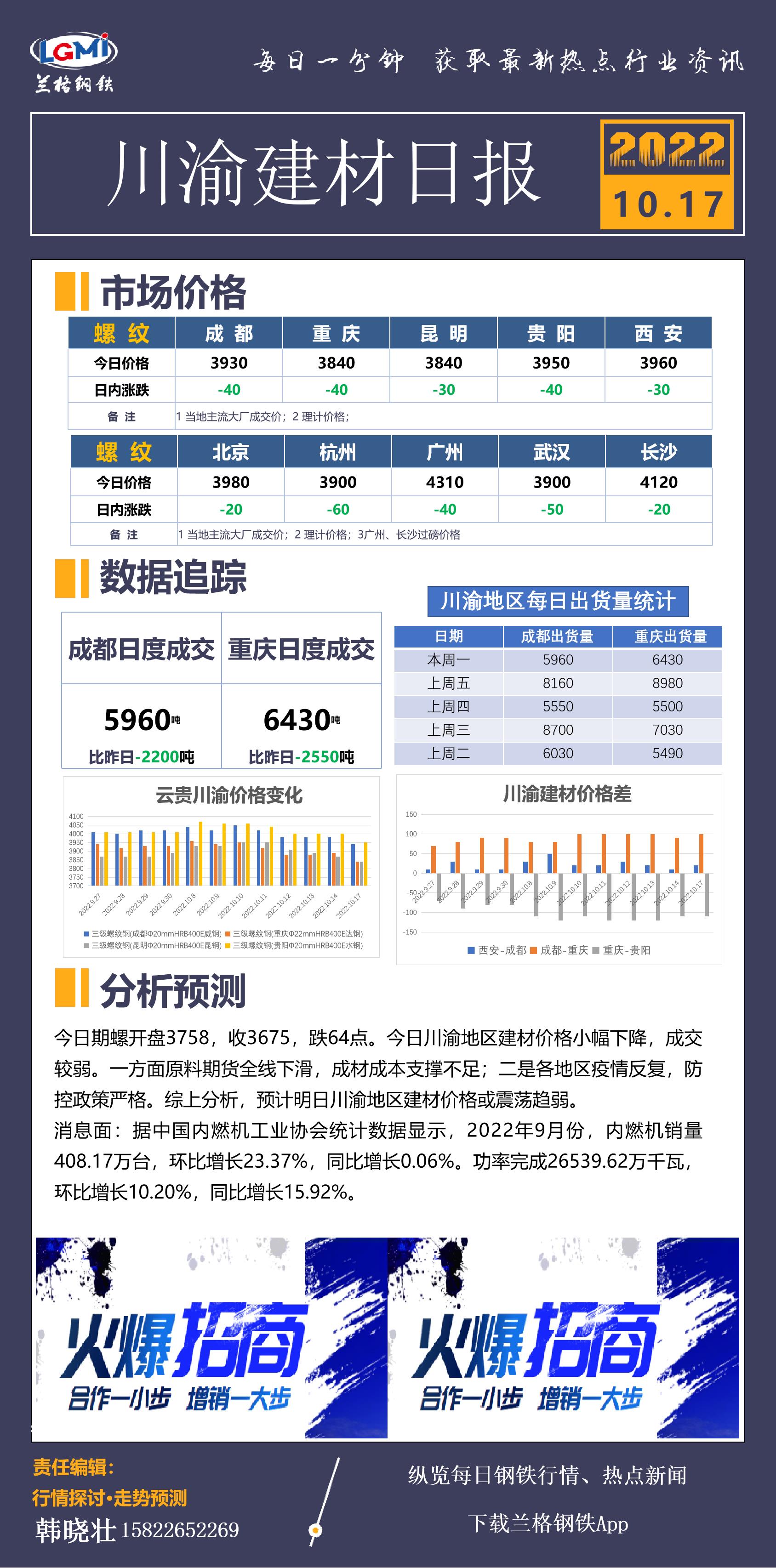- 川渝地区建材价格小幅下降 成交较弱2022/10/17