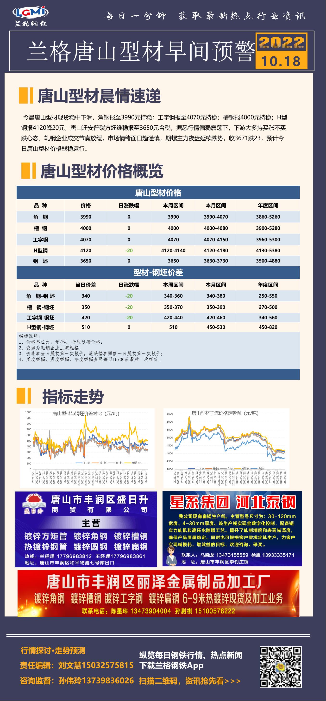 - 10月18日兰格唐山型材早间预警2022/10/18