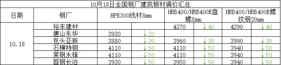 坯螺价差:以北京市场为例,10月18日河钢螺纹基价3930元与钢坯3650元基差为280元,较上个交易日减小50元。