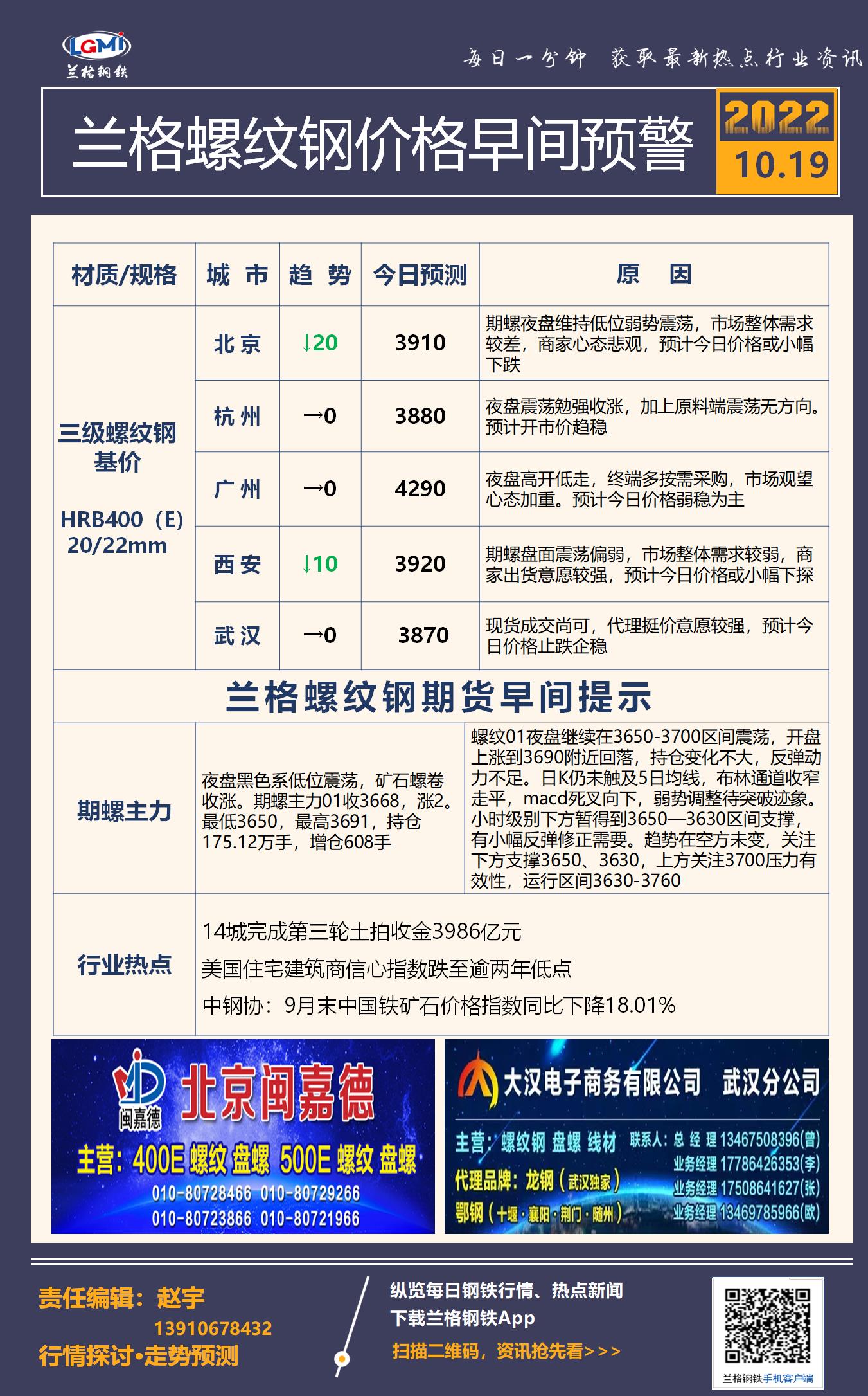 10月19日兰格螺纹钢价格早间预警