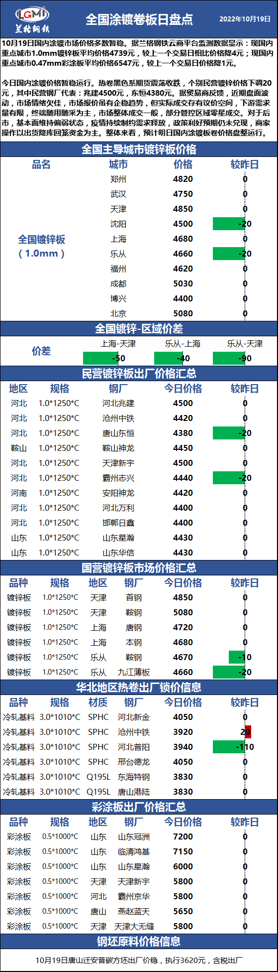 兰格涂镀板卷日盘点:涂镀价格多数暂稳 基本面持续偏弱