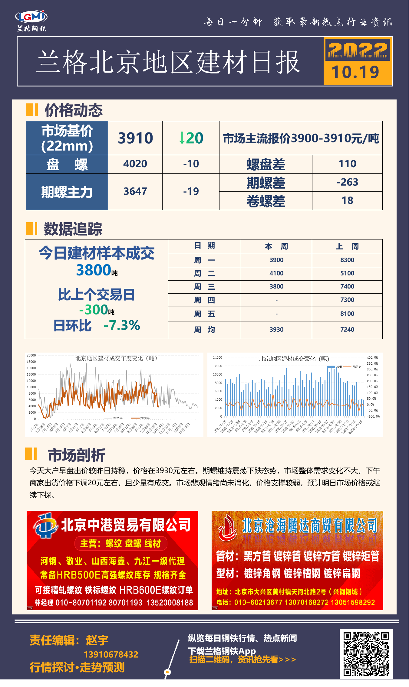- 兰格视点:10月19日钢铁行业概览2022/10/19