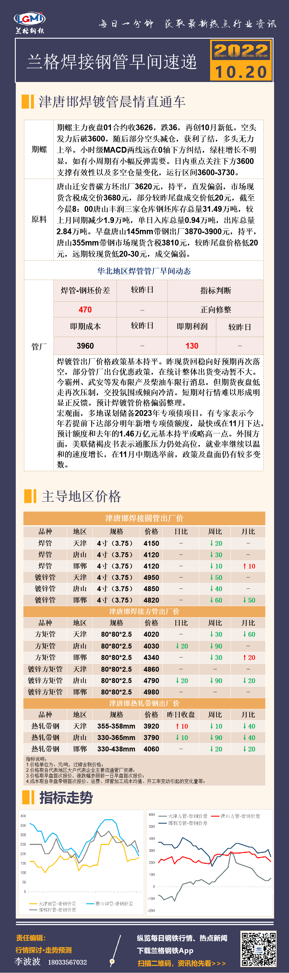 10月20日(9:20)兰格津唐邯焊接钢管早间速递