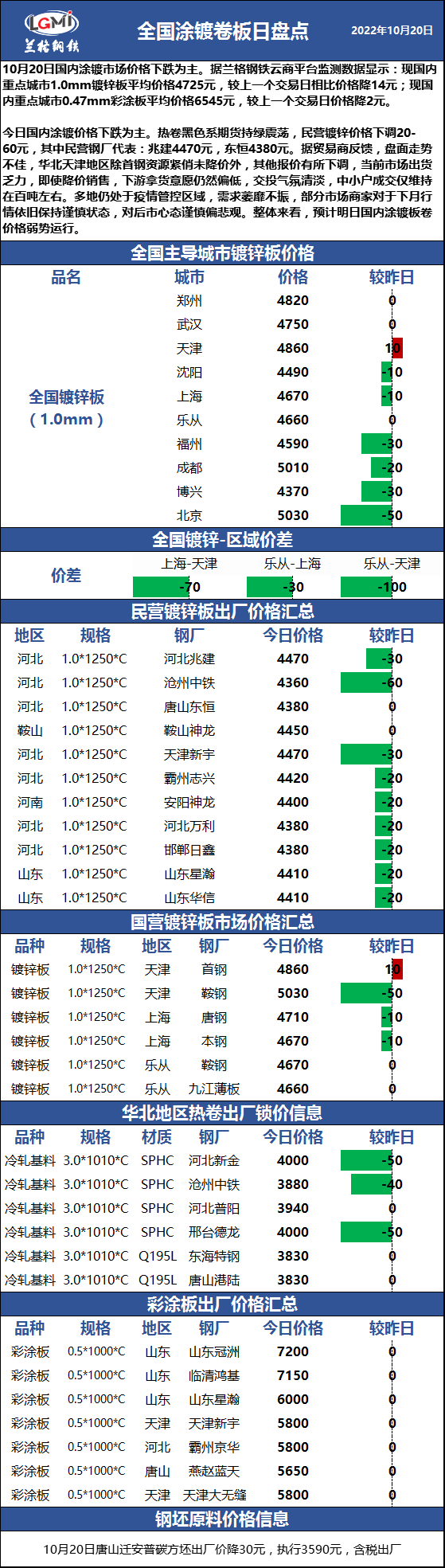 - 10月20日全国钢厂建筑钢材调价汇总2022/10/20